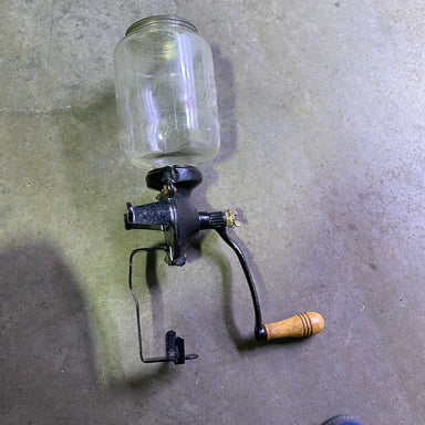 Description: Vintage Arcade Coffee GrinderCondition: Nice Condition Details: Glass Container with Cast Iron Parts