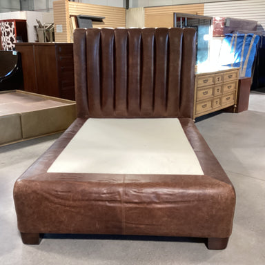 Description: FULL Distressed Ribbed Leather Platform Bed SetCondition: Some Wear, Purposeful Leather Distressing
