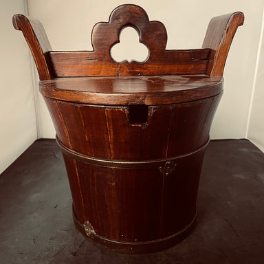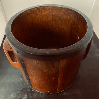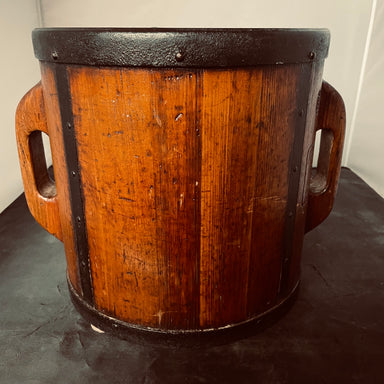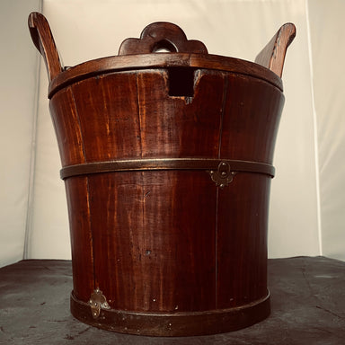 Description: Antique Chinese Wooden Metal Banded Rice/Water Bucket, 11.5"x 10"x 11.75"Condition: GoodDetails: Includes Unique Locking System