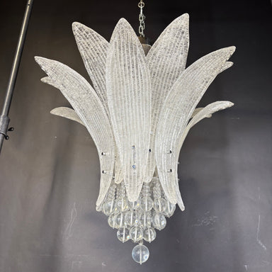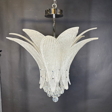 Description: Wired Custom 4-Light Floral Glass Pedals and Chrome Chandelier Condition: GreatSPECIAL DELIVERY