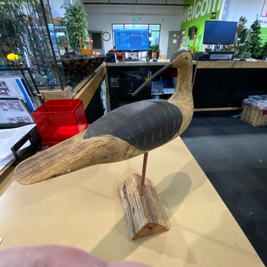Description: Hand Carved Wooden Marbled Godwit with StandCondition: Excellent Condition