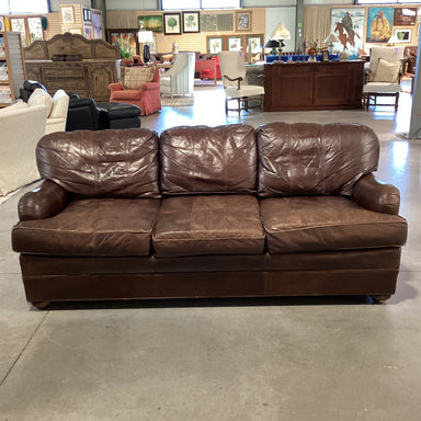 Description: Vanguard Furniture American Bungalow Three Cushion Genuine Leather SofaCondition: Leather Wear & Scratches
