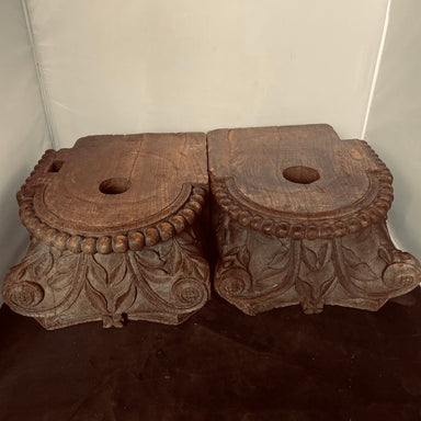 Description: Vintage Hand Carved Wood Pillar Bases/Candle Stands-PairCondition: GoodDetails: 10.75"x13"x 6", 10.5"x12"x 6"