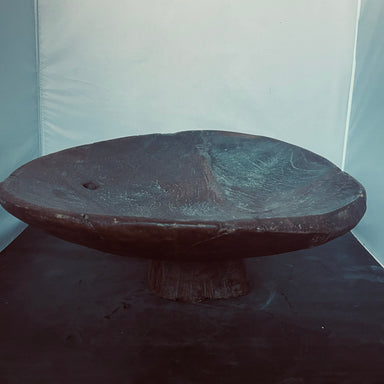 Description: Vintage Primitive Hand Carved Wooden Berber Tazza, Made in Morroco, 20.5"x17"x 7"Condition: Wear Consistent with Age