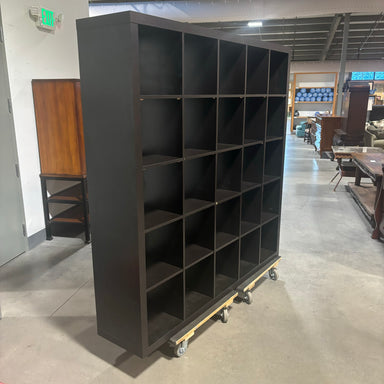 Description: IKEA Kallax Black 25 Cube Organizer Book CaseCondition: Large Dent in Lower Right Cubby, Great Otherwise