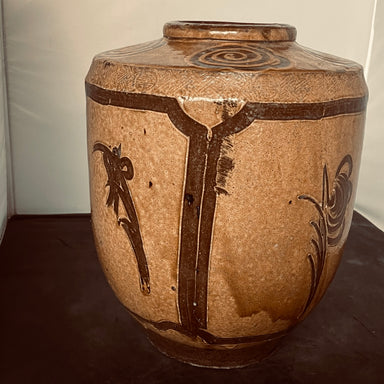 Description: Antique Chinese Martaban Jar, 11.5"x 13.25"Condition: Good
