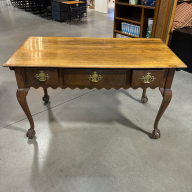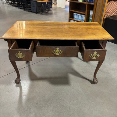 Description: Antique Walnut with Claw and Ball Feet & Brass Accents 3 Drawer DeskCondition: Top Finish Wear
