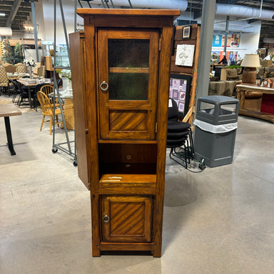 Description: Reddish Brown Wood Finish 2 Door Armoire Style Pullout DeskCondition: Some Wear & Scratches