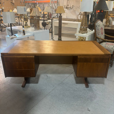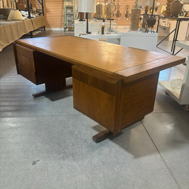 Description: Mid Century Modern Walnut with Leather Top 5 Drawer Floating Style Executive DeskCondition: Some Wear, Leather Marks & Wood Scratches