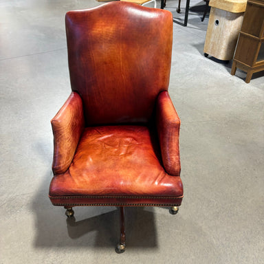 Description: Hooker Furniture Rust Leather Nailhead with Dark Finished Wood Base Executive Office ChairCondition: Some Seat Cracking