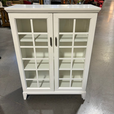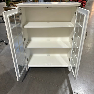 Description: Crate & Barrel White Wood with 2 Glass Doors & 2 Shelves Display BookcaseCondition: Some Marks & Scratches