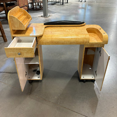 Description: Light Finish Wood Veneer 2 Door 1 Drawer Manicure Work Station DeskCondition: Slight Wear & Small Corner Chip