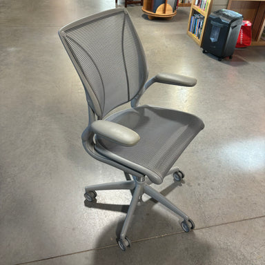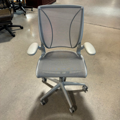 Description: Humanscale World by Niels Diffrient Grey Mesh Ergonomic Office ChairCondition: Slight WearDetails: Retails $1,460