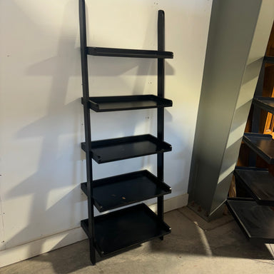 Description: Black Wood 5 Tiered Open Style Wall Leaning BookshelfCondition: Some Wood Wear & Marks