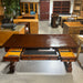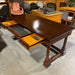 Ornate Carved Dark Finish Wood 3 Drawer with Trestle Desk 66"x 32"x 30"
