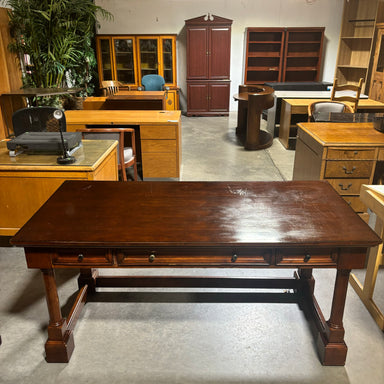 Ornate Carved Dark Finish Wood 3 Drawer with Trestle Desk 66"x 32"x 30"