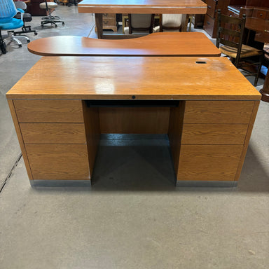 Description: Shelbyville Desk Company 8 Drawer Light Colored Solid Wood DeskCondition: Slight WearDetails: No Key
