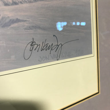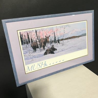 Description: Jon Van Zyle 'Mush' Moose and Sled Dogs Signed and Framed Print Wall DecorCondition: Good