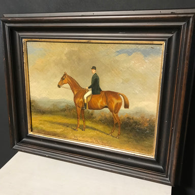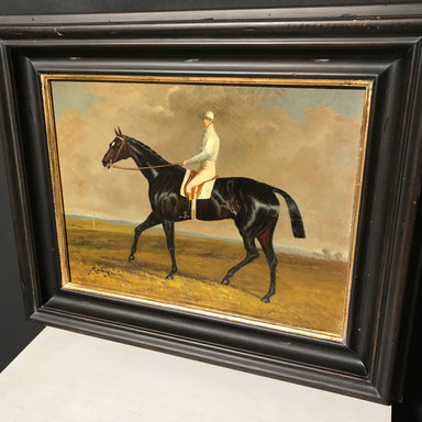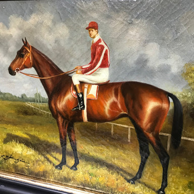 Description: Vintage Race Horse with Jockey Oil on Canvas Framed and Signed Wall DecorCondition: GreatDetails: Oil paint is crackling, wear consist...