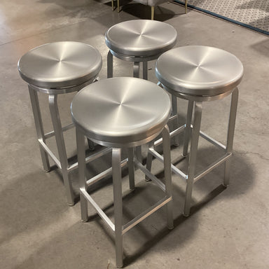 Description: Set of 4 Aluminum Swivel BarstoolsCondition: Good, Some Wear, Scratches