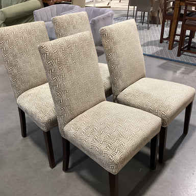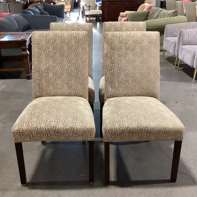Description: Set of 4 Beige & Ivory Raised Chenille Design Dining Chairs Condition: Good, Some Loose Backs & Seam Separation