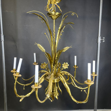 Description: Vaughan Designs Colombier 7-Light Bronze Leaf Candelabra with Shades Chandelier Condition: Great!Details: silk shades
