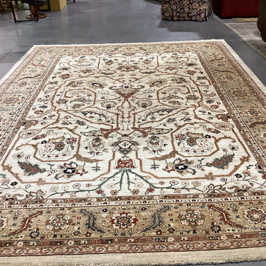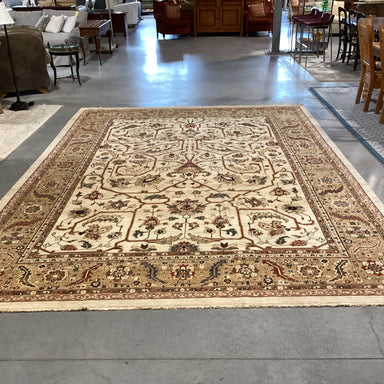 Description: Red Black Floral with Border Hand Knotted Wool RugCondition: Great, Slight Wear
