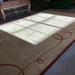 Description: Gold with Burnt Orange Ribbon Hand Made in Nepal Hand Knotted Spun Wool Rug