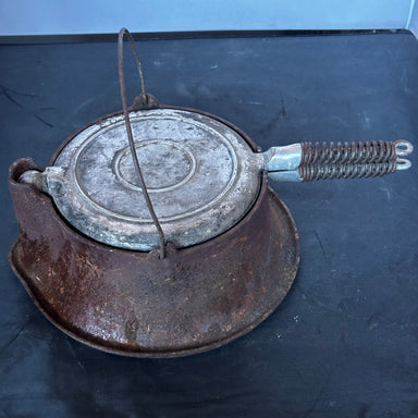 Description: Antique Cast Iron Wagner Ware Waffle Iron, 15" x 5"Condition: Good/Needs Restoration