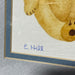 E. Hill Signed Original "Teddy" Bear Watercolor In A Silver Frame 8 1/4" x 10 1/4"