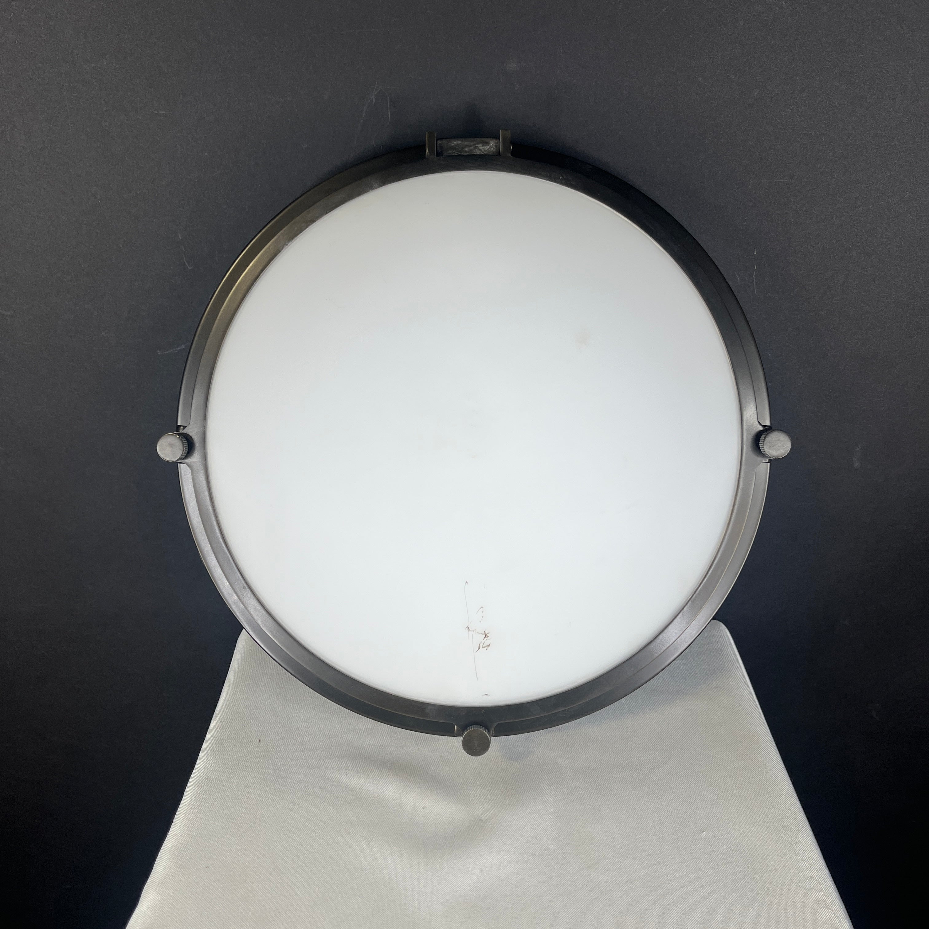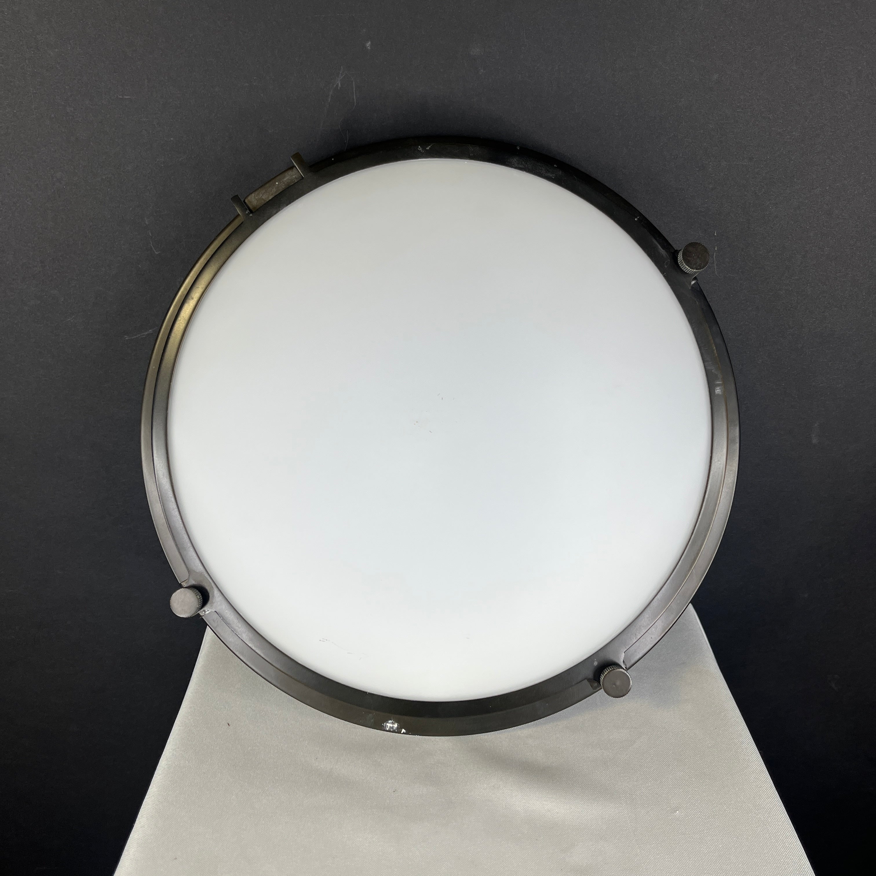 Industrial 1-Light Oil Rubbed Bronze with Milk Glass Porthole Style Flush Mount Ceiling Pendant 12.5” Diameter x 4”