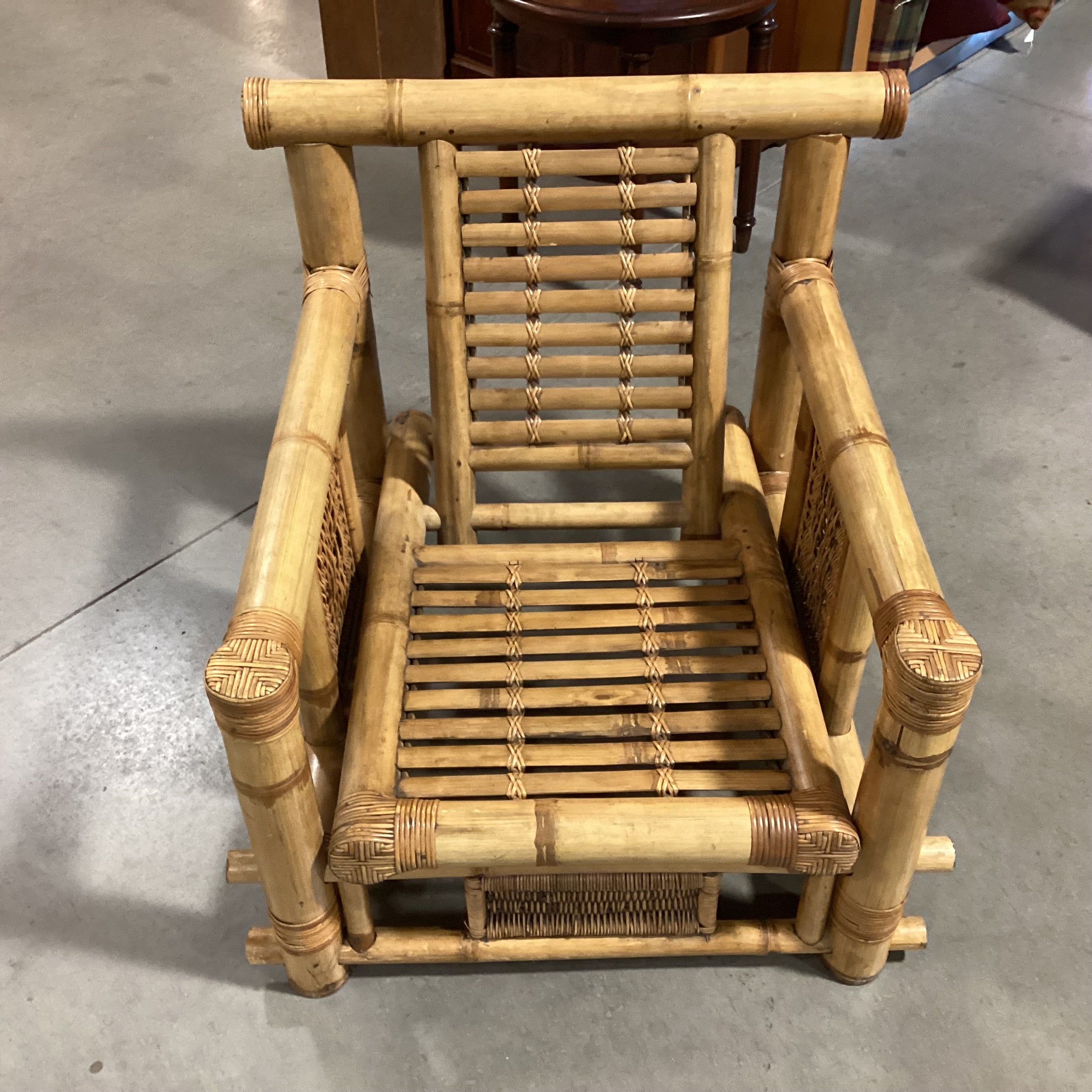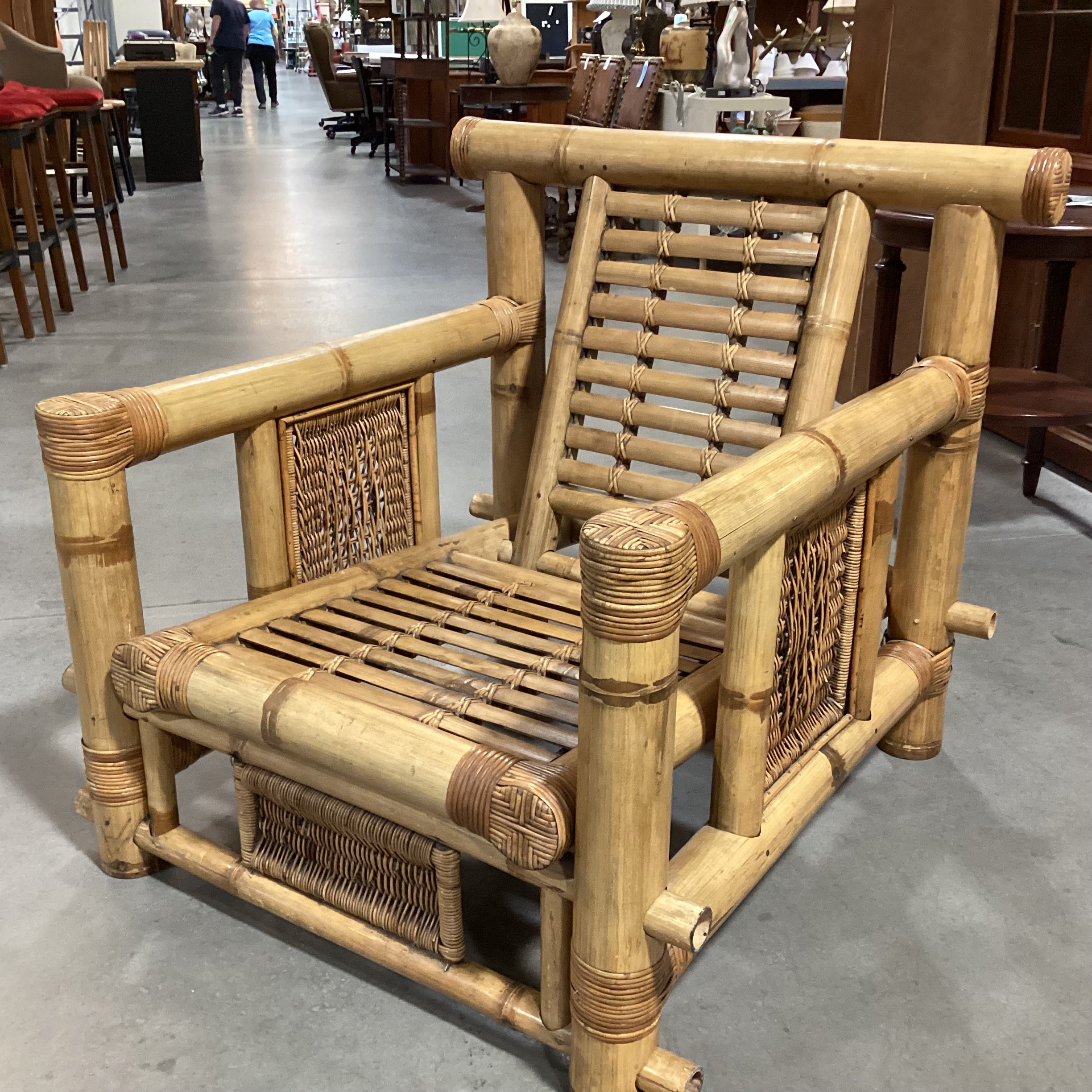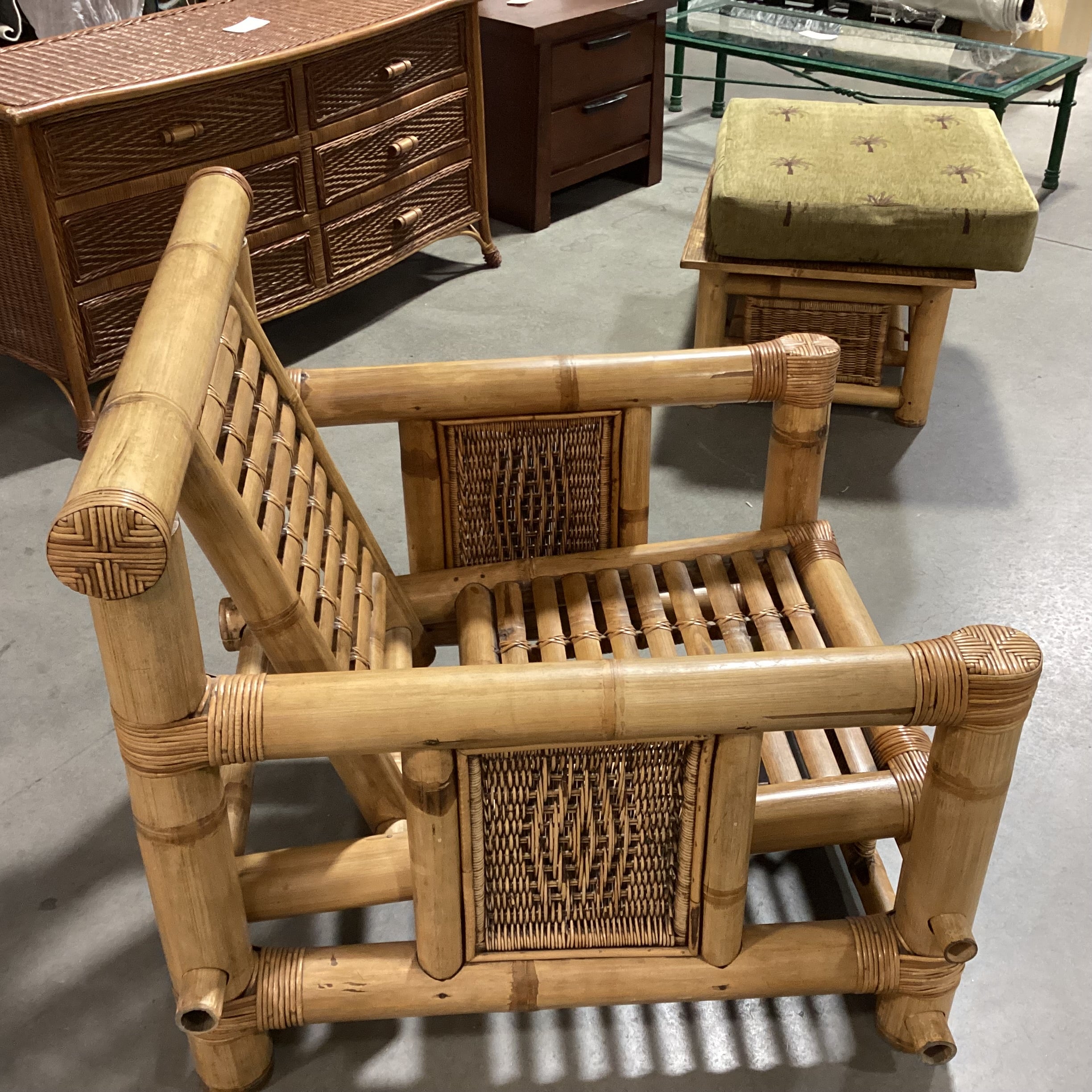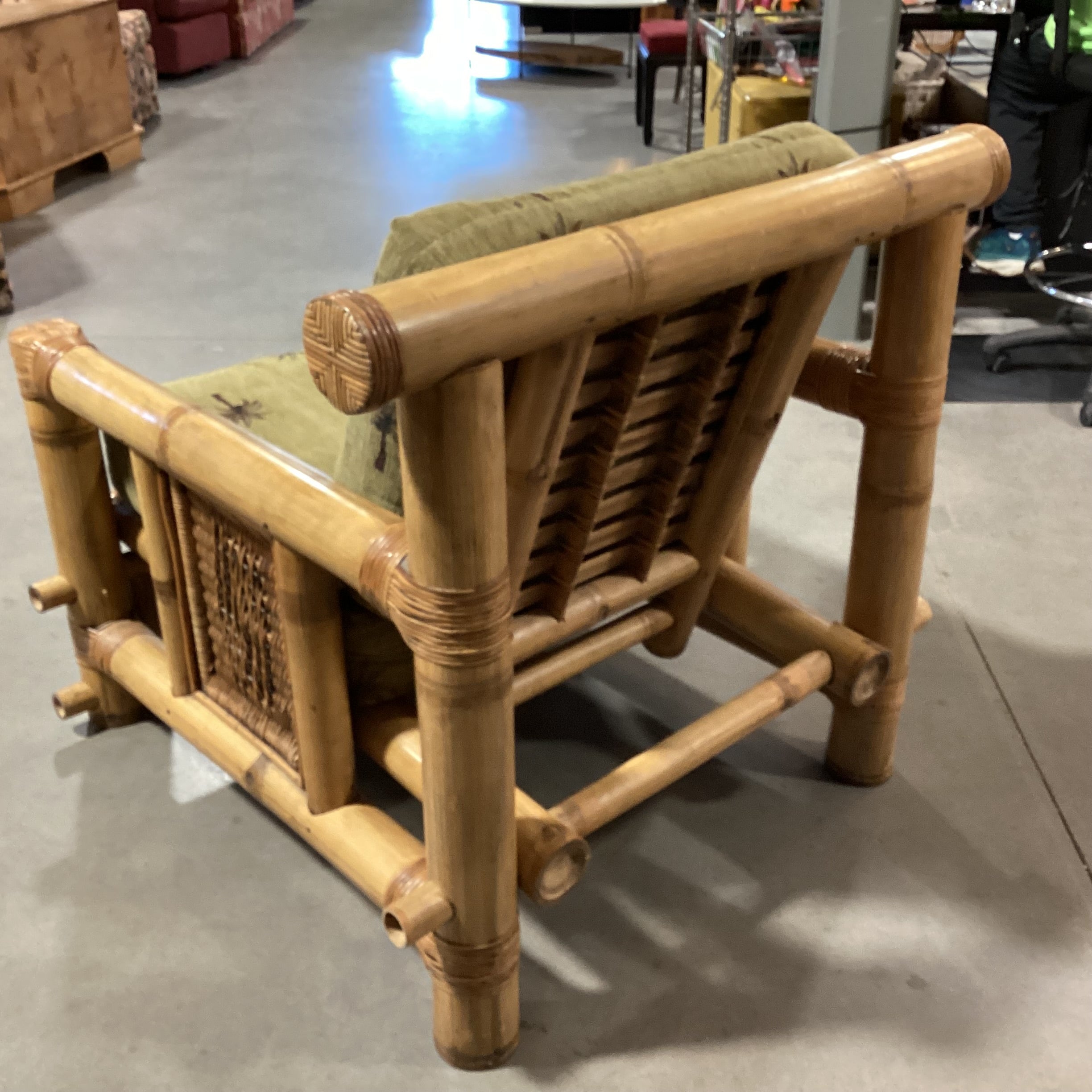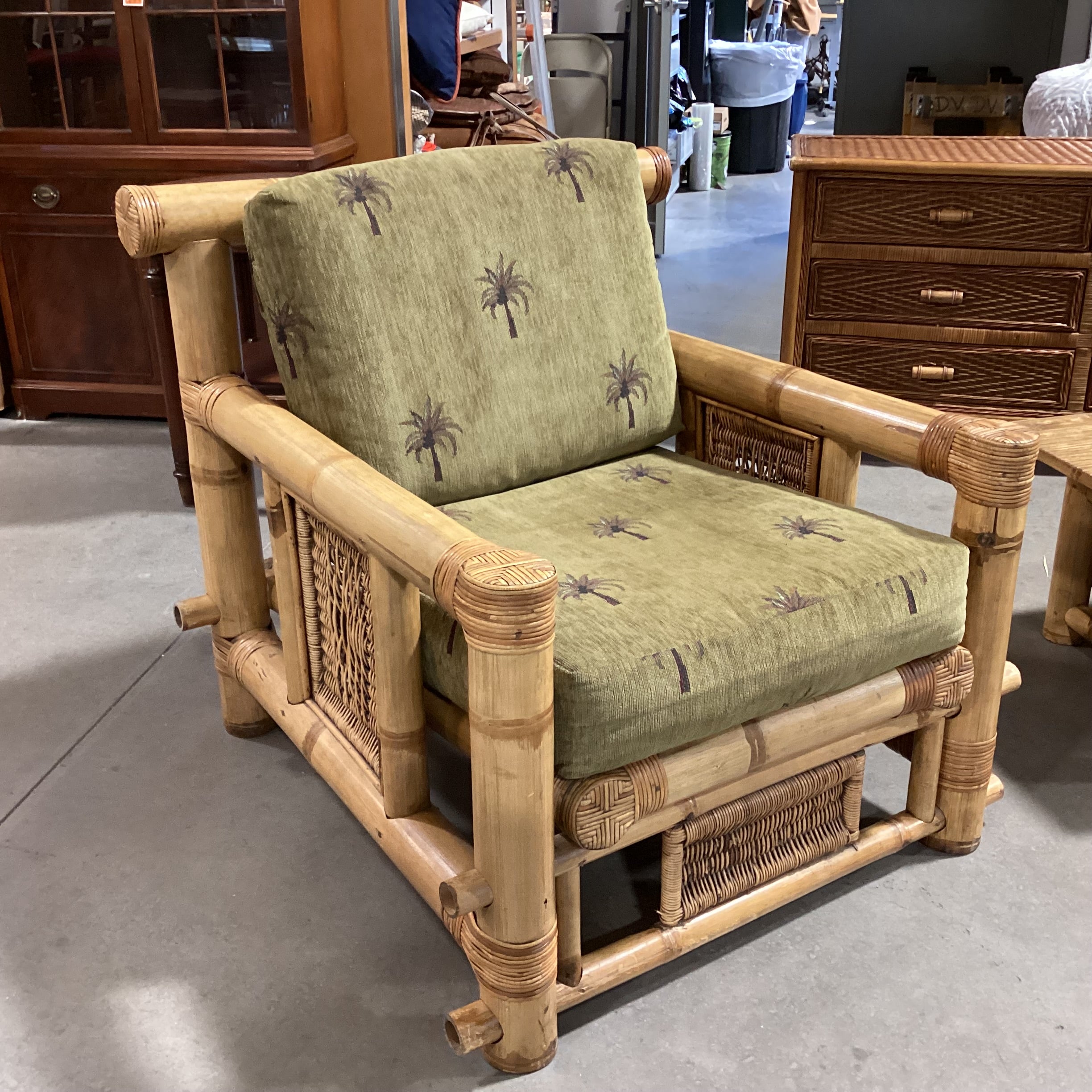 Vintage Oversized Bamboo & Rattan Wicker with Palm Tree Cushions Pagoda Lounge Chair 37"x 38"x 35"